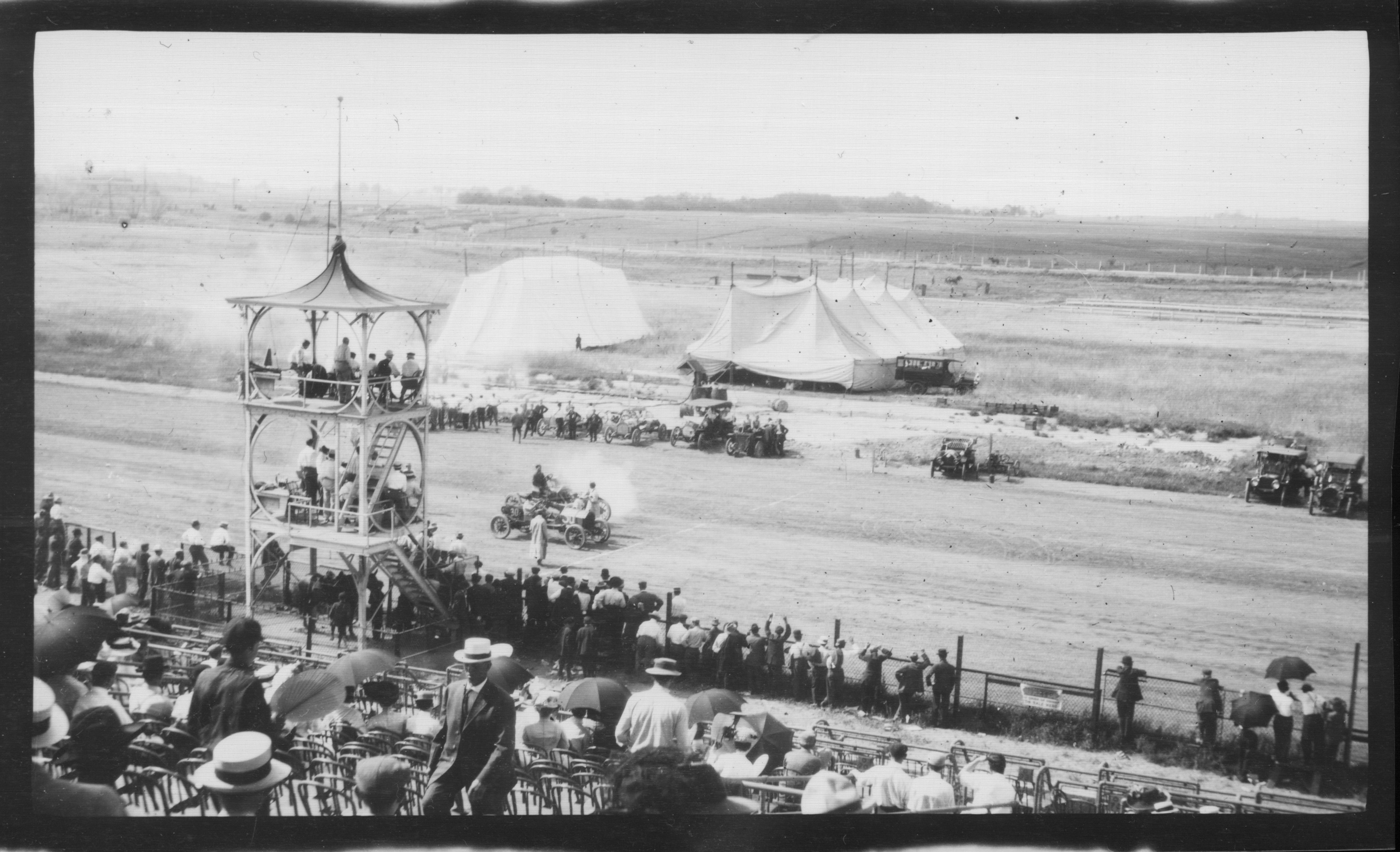 Automobile and auto-vs.-aircraft races were always popular. This appears to be the line-up for the start.