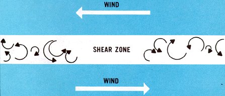 You also can determine wind direction from a weather map. If you face along an isobar or contour with lower pressure on your left, wind will be blowing in the direction you are facing. On a surface map, wind will cross the isobar at an angle toward lower pressure; on an upper air chart, it will be parallel to the contour. Wind blows counterclockwise (Northern Hemisphere) around a low and clockwise around a high. At the surface where winds cross the isobars at an angle, you can see a transport of air from high to low pressure. Although winds are virtually parallel to contours on an upper air chart, there still is a slow transport of air from high to low pressure. At the surface when air converges into a low, it cannot go outward against the pressure gradient, nor can it go downward into the ground; it must go upward.* Therefore, a low or trough is an area of rising air. *You may recall that earlier we said air "piles up" in the vicinity of 30° latitude increasing pressure and forming the subtropical high pressure belt. Why, then, does not air flowing into a low or trough increase pressure and fill the system? Dynamic forces maintain the low or trough; and these forces differ from the forces that maintain the subtropical high. Rising air is conducive to cloudiness and precipitation; thus we have the general association of low pressure - bad weather. Reasons for the inclement weather are developed in later chapters. By similar reasoning, air moving out of a high or ridge depletes the quantity of air. Highs and ridges, therefore, are areas of descending air. Descending air favors dissipation of cloudiness; hence the association, high pressure - good weather. Many times weather is more closely associated with an upper air pattern than with features shown by the surface map. Although features on the two charts are related, they seldom are identical. A weak surface system often loses its identity in the upper air pattern, while another system may be more evident on the upper air chart than on the surface map. Widespread cloudiness and precipitation often develop in advance of an upper trough or low. A line of showers and thunderstorms is not uncommon with a trough aloft even though the surface pressure pattern shows little or no cause for the development. On the other hand, downward motion in a high or ridge places a "cap" on convection, preventing any upward motion. Air may become stagnant in a high, trap moisture and contamination in low levels, and restrict ceiling and visibility. Low stratus, fog, haze, and smoke are not uncommon in high pressure areas. However, a high or ridge aloft with moderate surface winds most often produces good flying weather. Highs and lows tend to lean from the surface into the upper atmosphere. Due to this slope, winds aloft often blow across the associated surface systems. Upper winds tend to steer surface systems in the general direction of the upper wind flow. An intense, cold, low pressure vortex leans less than does a weaker system. The intense low becomes oriented almost vertically and is clearly evident on both surface and upper air charts. Upper winds encircle the surface low and do not blow across it. Thus, the storm moves very slowly and usually causes and extensive and persistent area of clouds, precipitation, strong winds, and generally adverse flying weather. The term cold low sometimes used by the weatherman describes such a system. A contrasting analogy to the cold low is the thermal low. A dry, sunny region becomes quite warm from intense surface heating thus generating a surface low pressure area. The warm air is carried to high levels by convection, but cloudiness is scant because of lack of moisture. Since in warm air, pressure decreases slowly with altitude, the warm surface low is not evident at upper levels. Unlike the cold low, the thermal low is relatively shallow with weak pressure gradients and no well defined cyclonic circulation. It generally supports good flying weather. However, during the heat of the day, one must be alert for high density altitude and convective turbulence. We have cited three exceptions to the low pressure - bad weather, high pressure - good weather rule: (1) cloudiness and precipitation with an upper air trough or low not evident on the surface chart; (2) the contaminated high; and (3) the thermal low. As this book progresses, you can further relate weather systems more specifically to flight operations.