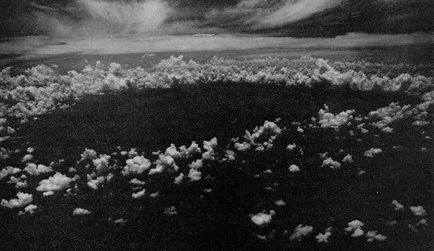 As air becomes saturated, water vapor begins to condense on the nearest available surface. What surfaces are in the atmosphere on which water vapor may condense? CONDENSATION NUCLEI The atmosphere is never completely clean; an abundance of microscopic solid particles suspended in the air are condensation surfaces. These particles, such as salt, dust, and combustion byproducts are "condensation nuclei." Some condensation nuclei have an affinity for water and can induce condensation or sublimation even when air is almost but not completely saturated. As water vapor condenses or sublimates on condensation nuclei, liquid or ice particles begin to grow. Whether the particles are liquid or ice does not depend entirely on temperature. Liquid water may be present at temperatures well below freezing. SUPERCOOLED WATER Freezing is complex and liquid water droplets often condense or persist at temperatures colder than 0° C. Water droplets colder than 0° C are supercooled. When they strike an exposed object, the impact induces freezing. Impact freezing of supercooled water can result in aircraft icing. Supercooled water drops very often are in abundance in clouds at temperatures between 0° C and -15° C with deceasing amounts at colder temperatures. Usually, at temperatures colder than -15° C, sublimation is prevalent; and clouds and fog may be mostly ice crystals with a lesser amount of supercooled water. However, strong vertical currents may carry supercooled water to great heights where temperatures are much colder than -15° C. Supercooled water has been observed at temperatures colder than -40° C. DEW AND FROST During clear nights with little or no wind, vegetation, often cools by radiation to a temperature at or below the dew point of the adjacent air. Moisture then collects on the leaves just as it does on a pitcher of ice water in a warm room. Heavy dew often collects on grass and plants when none collects on pavements or large solid objects. These more massive objects absorb abundant heat during the day, lose it slowly during the night, and cool below the dew point only in rather extreme cases. Frost forms in much the same way as dew. The difference is that the dew point of surrounding air must be colder than freezing. Water vapor then sublimates directly as ice crystals or frost rather than condensing as dew. Sometimes dew forms and later freezes; however, frozen dew is easily distinguished from frost. Frozen dew is hard and transparent while frost is white and opaque. To now, we have said little about clouds. What brings about the condensation or sublimation that results in cloud formation?
