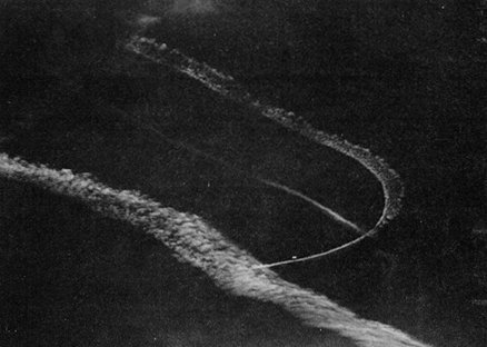 The exhaust contrail is formed by the addition to the atmosphere of sufficient water vapor from aircraft exhaust gases to cause saturation or supersaturation of the air. Since heat is also added to the atmosphere in the wake of an aircraft, the addition of water vapor must be of such magnitude that it saturates or supersaturates the atmosphere in spite of the added heat. There is evidence to support the idea that the nuclei which are necessary for condensation or sublimation may also be donated to the atmosphere in the exhaust gases of aircraft engines, further aiding contrail formation. These nuclei are relatively large. Recent experiments, however, have revealed that visible exhaust contrails may be prevented by adding very minute nuclei material (dust, for example) to the exhaust. Condensation and sublimation on these smaller nuclei result in contrail particles too small to be visible. AERODYNAMIC CONTRAILS In air that is almost saturated, aerodynamic pressure reduction around airfoils, engine nacelles, and propellers cools the air to saturation leaving condensation trails from these components. This type of trail usually is neither as dense nor as persistent as exhaust trails. However, under critical atmospheric conditions, an aerodynamic contrail may trigger the formation and spreading of a deck of cirrus clouds. Contrails create one problem unique to military operations in that they reveal the location of an aircraft attempting to fly undetected. A more general operational problem is a cirrus layer sometimes induced by the contrail. The induced layer may make necessary the strict use of instruments by a subsequent flight at that altitude. DISSIPATION TRAILS (DISTRAILS) The term dissipation trail applies to a rift in clouds caused by the heat of exhaust gases from an aircraft flying in a thin cloud layer. The exhaust gases sometimes warm the air to the extent that it is no longer saturated, and the affected part of the cloud evaporates. The cloud must be both thin and relatively warm for a distrail to exist; therefore, they are not common.