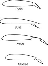 One of the most important activities in promoting safety in aviation is the airworthiness certification of airplanes. Each airplane certificated by the Federal Aviation Administration (FAA) has been manufactured under rigid specifications of design, materials, workmanship, construction, and performance. This certification process provides adequate assurance that the airplane will not fail from a structural standpoint if the airplane is properly maintained and flown within the limitations clearly specified. However, this may not be true if the airplane is abused, improperly maintained, or flown without regard to its limitations. The goal of airplane designers and manufacturers is to obtain maximum efficiency, combined with adequate strength. Excessive strength requires additional weight which lowers the efficiency of the airplane by reducing its speed and the amount of useful load it can carry. This chapter covers the airplane's structure, flight control systems, wing flaps, landing gear, engine operation, engine accessories, and associated engine instruments. Also included is material related to aircraft documents, aircraft maintenance, and inspection procedures. AIRPLANE STRUCTURE As stated in Chapter 1, Principles of Flight, the required structural strength is based on the intended use of the airplane. An airplane which is to be used for normal flying does not need the strength of an airplane which is intended to be used for acrobatic flight or other special purposes, some of which involve significant in-flight stresses. Numerous wing designs have been developed in an effort to determine the best type for a specific purpose. Basically, all wings are similar to those used by the Wright brothers and other pioneers. Modifications have been made, however, to increase lifting capacity, reduce drag, increase structural strength, and generally improve flight characteristics. Wing designs are subjected to thorough analysis before being approved for use on certificated airplanes. Strength tests determine the effect of strains and stresses which might be encountered in flight. Airplane strength is measured basically by the total load which the wings are capable of carrying without permanent damage to the wing structure. The load imposed upon the wings depends upon the type of flight in which the airplane is engaged. The wing must support not only the weight of the airplane, but the additional loads caused during certain flight maneuvers such as turns and pullouts from dives. Turbulent air also creates additional loads and these loads increase as the severity of the turbulence increases. To permit the utmost efficiency of construction without sacrificing safety, the FAA has established several categories of airplanes with minimum strength requirements for each. Limitations of each airplane are available to the pilot through markings on instruments, placards on instrument panels, operating limitations attached to Airworthiness Certificates, Aircraft Flight Manual, or Pilot's Operating Handbook. FLIGHT CONTROL SYSTEMS The flight control systems in most general aviation airplanes consist of the cockpit controls, cables, pulleys, and linkages connected to the movable control surfaces outside the airplane. There are three primary and two secondary flight control systems. The primary flight control systems consist of the elevator, aileron, and rudder, which are essential in controlling the aircraft. The secondary control systems consist of the trim tabs and wing flaps. The trim tabs enable the pilot to trim out control pressures, and the flaps enable the pilot to change the lifting characteristics of the wing and also to decrease the speed at which the wing stalls. All of the flight control systems, except the wing flaps, were discussed in Chapter 1, Principles of Flight. The flaps will be discussed at this point. Wing flaps are a movable part of the wing, normally hinged to the inboard trailing edge of each wing. Flaps are extended or retracted by the pilot. Extending the flaps increases the wing camber, wing area (some types), and the angle of attack of the wing. This increases wing lift and also increases induced drag. The increased lift enables the pilot to make steeper approaches to a landing without an increase in airspeed. Their use at recommended settings also provides increased lift under certain takeoff conditions. When the flaps are no longer needed, they can be retracted. Pilots are cautioned to operate the flaps within the airspeed limitations set forth for the particular airplane being flown. If the speed limitations are exceeded, the increased drag forces created by extending the flaps could result in structural damage to the airplane. Figure 2-1 shows the four types of flaps in general use. The plain or simple flap is a portion of the trailing edge of the wing on a hinged pivot which allows the flap to be moved downward, thereby changing the chord line, angle of attack, and the camber of the wing. The split flap is a hinged portion of the bottom surface of the wing only, which when extended increases the angle of attack by changing the chord line. The Fowler flap, when extended, not only tilts downward but also slides rearward on tracks. This increases angle of attack, wing camber, and wing area, thereby providing added lift without significantly increasing drag. The slotted flap in addition to changing the wing's camber and chord line also lets a portion of high pressure air beneath the wing travel through a slot. This increases the velocity of air and increases lift.