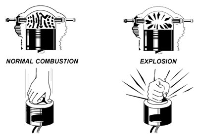 The air intake for the fuel injection system is somewhat similar to that used in the carburetor system. The fuel injection system, however, is equipped with an alternate air source located within the engine cowling. This source is used if the external air source is obstructed by ice or by other matter. The alternate air source is usually operated automatically with a backup manual system that can be used if the automatic feature malfunctions. Proper Fuel is Essential There are several grades of aviation fuel available; therefore, care must be exercised to assure that the correct aviation grade is being used for the specific type of engine. It can be harmful to the engine and dangerous to the flight if the wrong kind of fuel is used. It is the pilot's responsibility to obtain the proper grade of fuel. The proper grade is stated in the Aircraft Flight Manual or Pilot's Operating Handbook, on placards in the cockpit, and next to the filler caps. The proper fuel for an engine will burn smoothly from the spark plug outward, exerting a smooth pressure downward on the piston. Using low-grade fuel or too lean a mixture can cause detonation. Detonation or knock is a sudden explosion or shock, to a small area of the piston top, similar to striking it with a hammer. Detonation produces extreme heat which often progresses into preignition, causing structural stresses on parts of the engine. Therefore, to prevent detonation, the pilot should use the proper grade of fuel, maintain a sufficiently rich mixture, and maintain engine temperatures within the recommended limits. [Figure 2-9]