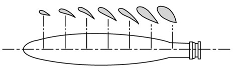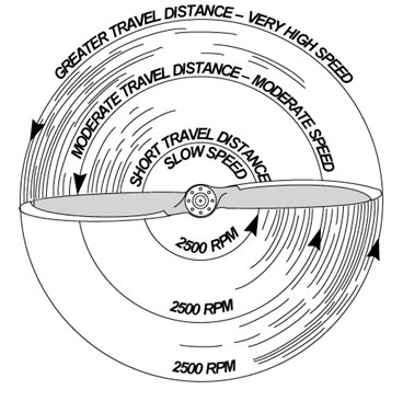 The reason for the twist is to produce uniform lift from the hub to the tip. As the blade rotates, there is a difference in the actual speed of the various portions of the blade. The tip of the blade travels faster than that part near the hub because the tip travels a greater distance than the hub in the same length of time. Changing the angle of incidence (pitch) from the hub to the tip to correspond with the speed produces uniform lift throughout the length of the blade. If the propeller blade was designed with the same angle of incidence throughout its entire length, it would be extremely inefficient because as airspeed increases in flight, the portion near the hub would have a negative angle of attack while the blade tip would be stalled. [Figure 2-11]