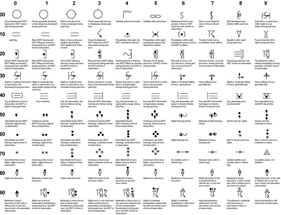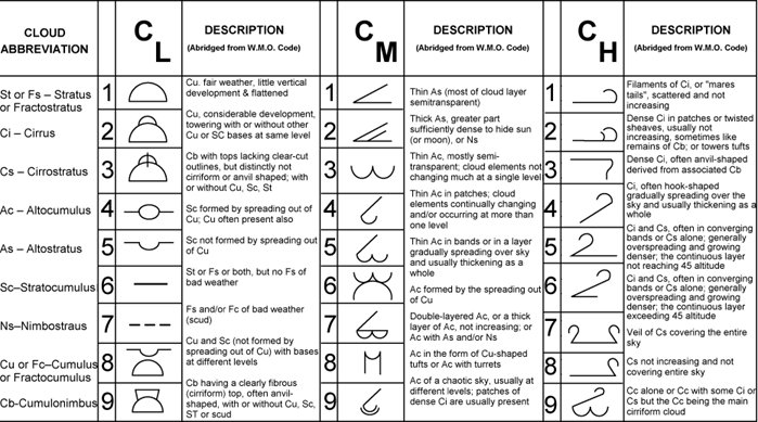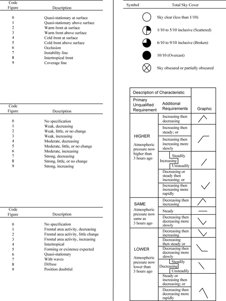 Figure 5-30. -- Key to aviation routine weather report observations. KEY TO METAR (NEW AVIATION ROUTINE WEATHER REPORT) OBSERVATIONS