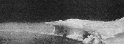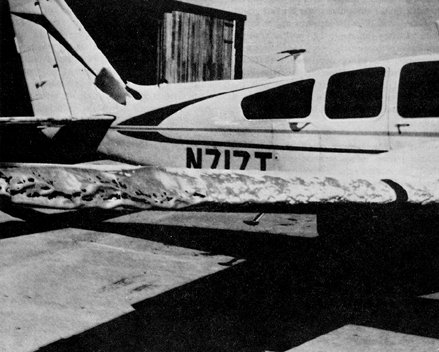 ICING Updrafts in a thunderstorm support abundant liquid water; and when carried above the freezing level, the water becomes supercooled. When temperature in the upward current cools to about -15° C, much of the remaining water vapor sublimates as ice crystals; and above this level, the amount of supercooled water decreases. Supercooled water freezes on impact with an aircraft (see chapter 10). Clear icing can occur at any altitude above the freezing level; but at high levels, icing may be rime or mixed rime and clear. The abundance of supercooled water makes clear icing very rapid between 0° C and -15° C, and encounters can be frequent in a cluster of cells. Thunderstorm icing can be extremely hazardous. HAIL Hail competes with turbulence as the greatest thunderstorm hazard to aircraft. Supercooled drops above the freezing level begin to freeze. Once a drop has frozen, other drops latch on and freeze to it, so the hailstone grows - sometimes into a huge iceball. Large hail occurs with severe thunderstorms usually built to great heights. Eventually the hailstones fall, possibly some distance from the storm core. Hail has been observed in clear air several miles from the parent thunderstorm. As hailstones fall through the melting level, they begin to melt, and precipitation may reach the ground as either hail or rain. Rain at the surface does not mean the absence of hail aloft. You should anticipate possible hail with any thunderstorm, especially beneath the anvil of a large cumulonimbus. Hailstones larger than one-half inch in diameter can significantly damage an aircraft in a few seconds. Figure 114 is a photograph of an aircraft flown through a " hail" of a thunderstorm.