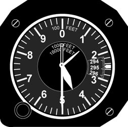 Principle of Operation The pressure altimeter is simply an aneroid barometer that measures the pressure of the atmosphere at the level where the altimeter is located, and presents an altitude indication in feet. The altimeter uses static pressure as its source of operation. Air is more dense at the surface of the Earth than aloft, therefore as altitude increases, atmospheric pressure decreases. This difference in pressure at various levels causes the altimeter to indicate changes in altitude. The presentation of altitude varies considerably between different types of altimeters. Some have one pointer while others have more. Only the multipointer type will be discussed in this handbook. The dial of a typical altimeter is graduated with numerals arranged clockwise from 0 to 9 inclusive as shown in figure 3-2. Movement of the aneroid element is transmitted through a gear train to the three hands which sweep the calibrated dial to indicate altitude. The shortest hand indicates altitude in tens of thousands of feet; the intermediate hand in thousands of feet; and the longest hand in hundreds of feet, subdivided into 20-foot increments. This indicated altitude is correct, however, only if the sea level barometric pressure is standard (29.92 in. Hg.), the sea level free air temperature is standard (+15° C or 59° F), and furthermore, the pressure and temperature decrease at a standard rate with an increase in altitude. Since atmospheric pressure continually changes, a means is provided to adjust the altimeter to compensate for nonstandard conditions. This is accomplished through a system by which the altimeter setting (local station barometric pressure reduced to sea level) is set to a barometric scale located on the face of the altimeter. Only after the altimeter is set properly will it indicate the correct altitude. Effect of Nonstandard Pressure and Temperature If no means were provided for adjusting altimeters to nonstandard pressure, flight could be hazardous. For example, if a flight is made from a high pressure area to a low pressure area without adjusting the altimeter, the actual altitude of the airplane will be LOWER than the indicated altitude, and when flying from a low pressure area to a high pressure area, the actual altitude of the airplane will be HIGHER than the indicated altitude. Fortunately, this error can be corrected by setting the altimeter properly. Variations in air temperature also affect the altimeter. On a warm day, the expanded air is lighter in weight per unit volume than on a cold day, and consequently the pressure levels are raised. For example, the pressure level where the altimeter indicates 10,000 feet will be HIGHER on a warm day than under standard conditions. On a cold day, the reverse is true, and the 10,000-foot level would be LOWER. The adjustment made by the pilot to compensate for nonstandard pressures does not compensate for nonstandard temperatures. Therefore, if terrain or obstacle clearance is a factor in the selection of a cruising altitude, particularly at higher altitudes, remember to anticipate that COLDER-THAN-STANDARD TEMPERATURE will place the aircraft LOWER than the altimeter indicates. Therefore, a higher altitude should be used to provide adequate terrain clearance. A memory aid in applying the above is "from a high to a low or hot to cold, look out below." To adjust the altimeter for variation in atmospheric pressure, the pressure scale in the altimeter setting window, calibrated in inches of mercury (in. Hg.), is adjusted to correspond with the given altimeter setting. Altimeter settings can be defined as station pressure reduced to sea level, expressed in inches of mercury. The station reporting the altimeter setting takes an hourly measurement of the station's atmospheric pressure and corrects this value to sea level pressure. These altimeter settings reflect height above sea level only in the vicinity of the reporting station. Therefore, it is necessary to adjust the altimeter setting as the flight progresses from one station to the next. 14 CFR part 91 provides the following concerning altimeter settings: The cruising altitude of an aircraft below 18,000 feet mean sea level (MSL) shall be maintained by reference to an altimeter that is set to the current reported altimeter setting of a station located along the route of flight and within 100 nautical miles (NM) of the aircraft. If there is no such station, the current reported altimeter setting of an appropriate available station shall be used. In an aircraft having no radio, the altimeter shall be set to the elevation of the departure airport or an appropriate altimeter setting available before departure. Many pilots confidently expect that the current altimeter setting will compensate for irregularities in atmospheric pressure at all altitudes. This is not always true because the altimeter setting broadcast by ground stations is the station pressure corrected to mean sea level. The altimeter setting does not account for the irregularities at higher levels, particularly the effect of nonstandard temperature. It should be pointed out, however, that if each pilot in a given area were to use the same altimeter setting, each altimeter will be equally affected by temperature and pressure variation errors, making it possible to maintain the desired separation between aircraft. When flying over high mountainous terrain, certain atmospheric conditions can cause the altimeter to indicate an altitude of 1,000 feet, or more, HIGHER than the actual altitude. For this reason, a generous margin of altitude should be allowed -- not only for possible altimeter error, but also for possible downdrafts which are particularly prevalent if high winds are encountered. To illustrate the use of the altimeter setting system, follow a flight from Love Field, Dallas, Texas, to Abilene Municipal Airport, Abilene, Texas, via Mineral Wells. Before takeoff from Love Field, the pilot receives a current altimeter