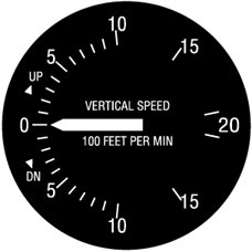 Vertical Speed Indicator The vertical speed indicator (VSI) or vertical velocity indicator indicates whether the aircraft is climbing, descending, or in level flight. The rate of climb or descent is indicated in feet per minute. If properly calibrated, this indicator will register zero in level flight. [Figure 3-3]