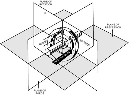 Figure 3-6. -- Precession of a gyroscope resulting from an applied deflective force.