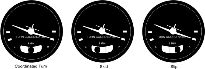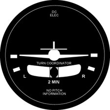 The flight instruments using the gyroscopic property of rigidity for their operation are the attitude indicator and the heading indicator; therefore, their rotors must be freely or universally mounted. The second property of a gyroscope precession is the resultant action or deflection of a spinning wheel when a deflective force is applied to its rim. When a deflective force is applied to the rim of a rotating wheel, the resultant force is 90° ahead in the direction of rotation and in the direction of the applied force. The rate at which the wheel precesses is inversely proportional to the speed of the rotor and proportional to the deflective force. The force with which the wheel precesses is the same as the deflective force applied (minus the friction in the bearings). If too great a deflective force is applied for the amount of rigidity in the wheel, the wheel precesses and topples over at the same time. [Figure 3-6] Turn Coordinator The turn coordinator shows the yaw and roll of the aircraft around the vertical and longitudinal axes. When rolling in or rolling out of a turn, the miniature airplane banks in the direction of the turn. The miniature airplane does not indicate the angle of bank, but indicates the rate of turn. When aligned with the turn index, it represents a standard rate of turn of 3° per second. [Figure 3-7]