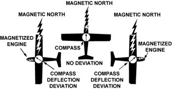 Figure 8-9. -- Magnetized portions of the airplane cause the compass to deviate from its normal indications.
