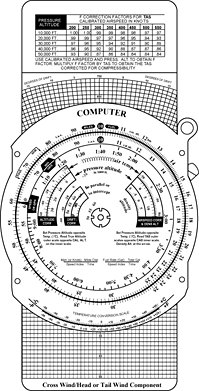 BASIC CALCULATIONS Before a cross-country flight, a pilot should make common calculations for time, speed, and distance, and the amount of fuel required. These calculations should present no difficulty. Converting Minutes to Equivalent Hours It frequently is necessary to convert minutes into equivalent hours when solving speed, time, and distance problems. To convert minutes to hours, divide by 60 (60 minutes = 1 hour). Thus, 30 minutes 30/60 = 0.5 hour. To convert hours to minutes, multiply by 60. Thus, 0.75 hour equals 0.75 x 60 = 45 minutes. Time T = D/GS To find the time (T) in flight, divide the distance (D) by the groundspeed (GS). The time to fly 210 nautical miles at a groundspeed of 140 knots is 210 divided by 140, or 1.5 hours. (The 0.5 hour multiplied by 60 minutes equal 30 minutes.) Answer: 1:30. Distance D = GS X T To find the distance flown in a given time, multiply groundspeed by time. The distance flown in 1 hour 45 minutes at a groundspeed of 120 knots is 120 x 1.75, or 210 nautical miles. Groundspeed GS = D/T To find the groundspeed, divide the distance flown by the time required. If an airplane flies 270 NM in 3 hours, the groundspeed is 270 divided by 3 = 90 knots. Converting Knots to Miles Per Hour Another conversion is that of changing knots to miles per hour. The aviation industry is using knots more frequently than miles per hour, but it might be well to discuss the conversion for those who do use miles per hour when working with speed problems. The National Weather Service reports both surface winds and winds aloft in knots. However, airspeed indicators in some airplanes are calibrated in miles per hour (although many are now calibrated in both miles per hour and knots). Pilots, therefore, should learn to convert windspeeds in knots to miles per hour. A knot is 1 nautical mile per hour. Because there are 6,076.1 feet in a nautical mile and 5,280 feet in a statute mile, the conversion factor is 1.15. To convert knots to miles per hour, multiply knots by 1.15. For example: a windspeed of 20 knots is equivalent to 23 MPH. Most flight computers or electronic calculators have a means of making this conversion. Another quick method of conversion is to use the scales of nautical miles and statute miles at the bottom of aeronautical charts. Fuel Consumption Airplane fuel consumption rate is computed in gallons per hour. Consequently, to determine the fuel required for a given flight, the time required for the flight must be known. Time in flight multiplied by rate of consumption gives the quantity of fuel required. For example, a flight of 400 NM at a groundspeed of 100 knots requires 4 hours. If the plane consumes 5 gallons an hour, the total consumption will be 4 x 5, or 20 gallons. The rate of fuel consumption depends on many factors: condition of the engine, propeller pitch, propeller RPM, richness of the mixture, and particularly the percentage of horsepower used for flight at cruising speed. The pilot should know the approximate consumption rate from cruise performance charts, or from experience. In addition to the amount of fuel required for the flight, there should be sufficient fuel for reserve. Flight Computers Up to this point, only mathematical formulas have been used to determine time, distance, speed, fuel consumption, etc. In reality, most pilots will use a mechanical or electronic flight computer. These devices can compute numerous problems associated with flight planning and navigation. The mechanical or electronic computer will have an instruction book and most likely sample problems so the pilot can become familiar with its functions and operation. [Figure 8-16] Plotter Another aid in flight planning is a plotter, which is a protractor and ruler. The pilot can use this when determining true course and measuring distance. Most plotters have a ruler which measures in both nautical and statute miles and has a scale for a sectional chart on one side and a world aeronautical chart on the other. [Figure 8-16] P ILOTAGE Pilotage is navigation by reference to landmarks or checkpoints. It is a method of navigation that can be used on any course that has adequate checkpoints, but it is more commonly used in conjunction with dead reckoning and VFR radio navigation. The checkpoints selected should be prominent features common to the area of the flight. Choose checkpoints that can be readily identified by other features such as roads, rivers, railroad tracks, lakes, power lines, etc. If possible, select features that will make useful boundaries or brackets on each side of the course, such as highways, rivers, railroads, mountains, etc. A pilot can keep from drifting too far off course by referring to and not crossing the selected brackets. Never place complete reliance on any single checkpoint. Choose ample checkpoints. If one is missed, look for the next one while maintaining the heading. When determining position from checkpoints, remember that the scale of a sectional chart is 1 inch = 8 statute miles or 6.86 nautical miles. For example, if a checkpoint selected was approximately one-half inch from the course line on the chart, it is 4 statue miles or 3.43 nautical miles from the course on the ground. In the more congested areas, some of the smaller features are not included on the chart. If confused, hold the heading. If a turn is made away from the heading, it will be easy to become lost.